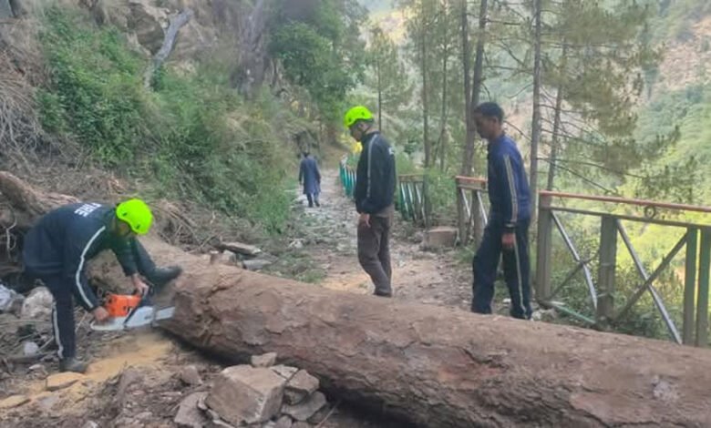 चमोली। अनुसूया मंदिर पैदल मार्ग पर गिरे विशालकाय पेड़ को फायर सर्विस गोपेश्वर की टीम ने त्वरित कार्यवाही कर हटा दिया, जिसके बाद श्रद्धालुओं को राहत मिली।