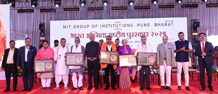 देहरादून। एमआईटी वर्ल्ड पीस यूनिवर्सिटी ने प्रतिष्ठित भारत अस्मिता राष्ट्रीय पुरस्कार समारोह का आयोजन किया, जिसमें समाज के विभिन्न क्षेत्रों जैसे सामाजिक कार्य, स्वास्थ्य देखभाल, शासन, और कला में महत्वपूर्ण योगदान देने वाले व्यक्तियों को सम्मानित किया गया। इस कार्यक्रम में संस्थापक दिवस भी मनाया गया, जो विश्वविद्यालय की स्थापना और विकास के मार्गदर्शक, प्रो. डॉ. विश्वनाथ डी. कराड के 85वें जन्मदिन के अवसर पर आयोजित किया गया। समारोह में पद्मश्री पुरस्कार प्राप्त कायकलश केहर द्वारा एक लाइव संगीत प्रदर्शन भी किया गया, जिसकी मधुर धुनों ने दर्शकों को मंत्रमुग्ध कर दिया और उत्सव में रंग भर दिए।