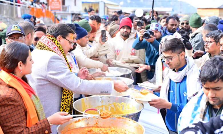 देहरादून। विश्व प्रसिद्ध ग्यारहवें ज्योर्तिलिंग श्री केदारनाथ धाम के कपाट खुलने के अवसर पर केदारनाथ में मुख्यमंत्री श्री पुष्कर सिंह धामी ने केदारनाथ परिसर में आयोजित मुख्य सेवक भंडारा में श्रद्धालुओं को प्रसाद वितरित किया। इस दौरान उन्होंने केदारनाथ की स्वच्छता में लगे पर्यावरण मित्रों, पुनर्निर्माण कार्य में अपना महत्वपूर्ण योगदान देने वाले लोगों को सम्मानित भी किया।
