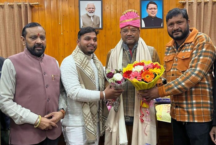 देहरादून । राष्ट्रीय वाल्मिकी क्रांतिकारी मोर्चा ने नवनिर्वाचित महापौर सौरभ थपलियाल का पुष्पगुच्छ एवं पगड़ी पहना कर स्वागत कियाl पूर्व राज्यमंत्री एवं मोर्चा के राष्ट्रीय अध्यक्ष भगवत प्रसाद मकवाना के नेतृत्व में काफी संख्या में समाज के लोग मेयर सौरभ थपलियाल को उनके नगर निगम स्थित कार्यालय में बधाई देने पहुंचे l मोर्चा की ओर से मेयर श्री थपलियाल को शॉल एवं पगड़ी पहनाई एवं महर्षि वाल्मीकि का चित्र भी भेंट किया l
