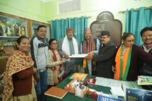 आज 20 जनवरी 2025 को भारतीय जनता पार्टी महानगर देहरादून महापौर प्रत्याशी सौरभ थपलियाल ने श्री टपकेश्वर महादेव मंदिर से विधिवत पूजा अर्चना कर दिन की शुरुआत की। कैबिनेट मंत्री गणेश जोशी के नेतृत्व में सौरभ थपलियाल को गोर्खाली सुधार सभा द्वारा गोर्खाली टोपी पहनाकर स्वागत अभिनंदन किया गया। समिति के अध्यक्ष द्वारा कहा गया कि सौरभ थपलियाल से परिचय काफी समय से है। हमारी समिति द्वारा पूर्ण समर्थन सौरभ थपलियाल को रहेगा। सहयोग में मंडल अध्यक्ष ज्योति कोटिया, भावना शर्मा एवं समिति के अन्य पदाधिकारी उपस्थित रहे।