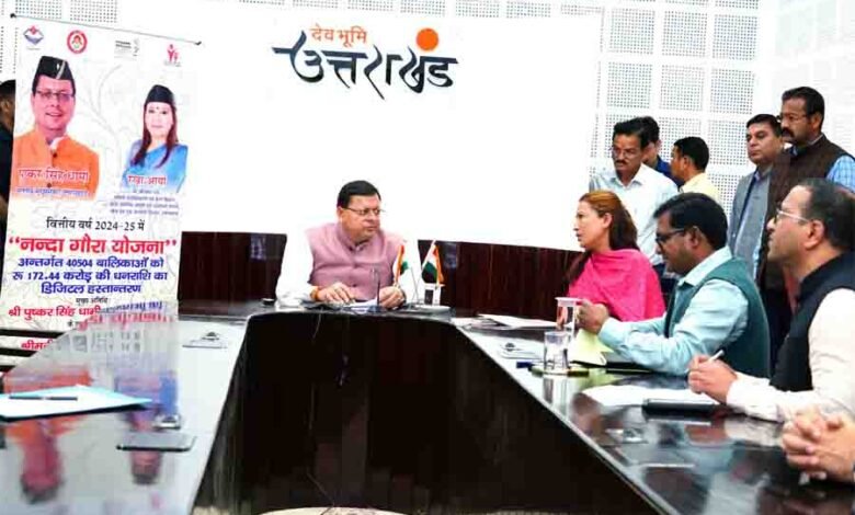 देहरादून।मुख्यमंत्री पुष्कर सिंह धामी ने शुक्रवार को मुख्यमंत्री कैंप कार्यालय से डीबीटी के माध्यम से नंदा गौरा योजना के 40 हजार 504 लाभार्थियों को वित्तीय वर्ष 2024-25 में लाभान्वित 01 अरब 72 करोड़ 44 लाख 04 हजार रुपए की धनराशि का वितरण किया। इस योजना के माध्यम से विगत 05 वर्ष में 02 लाख 84 हजार 559 लाभार्थियों को कुल 09 अरब 68 करोड़ 64 लाख 51 हजार की धनराशि डीबीटी के माध्यम से प्रदान की गई।