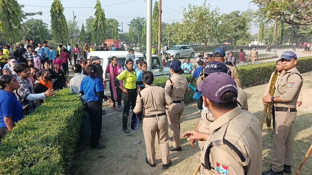 सिडकुल पंतनगर में श्रमिक कई दिन से अपनी मांगों को लेकर धरना-प्रदर्शन कर रहे हैं, आज अचानक धरना प्रदर्शन उग्र हो गया